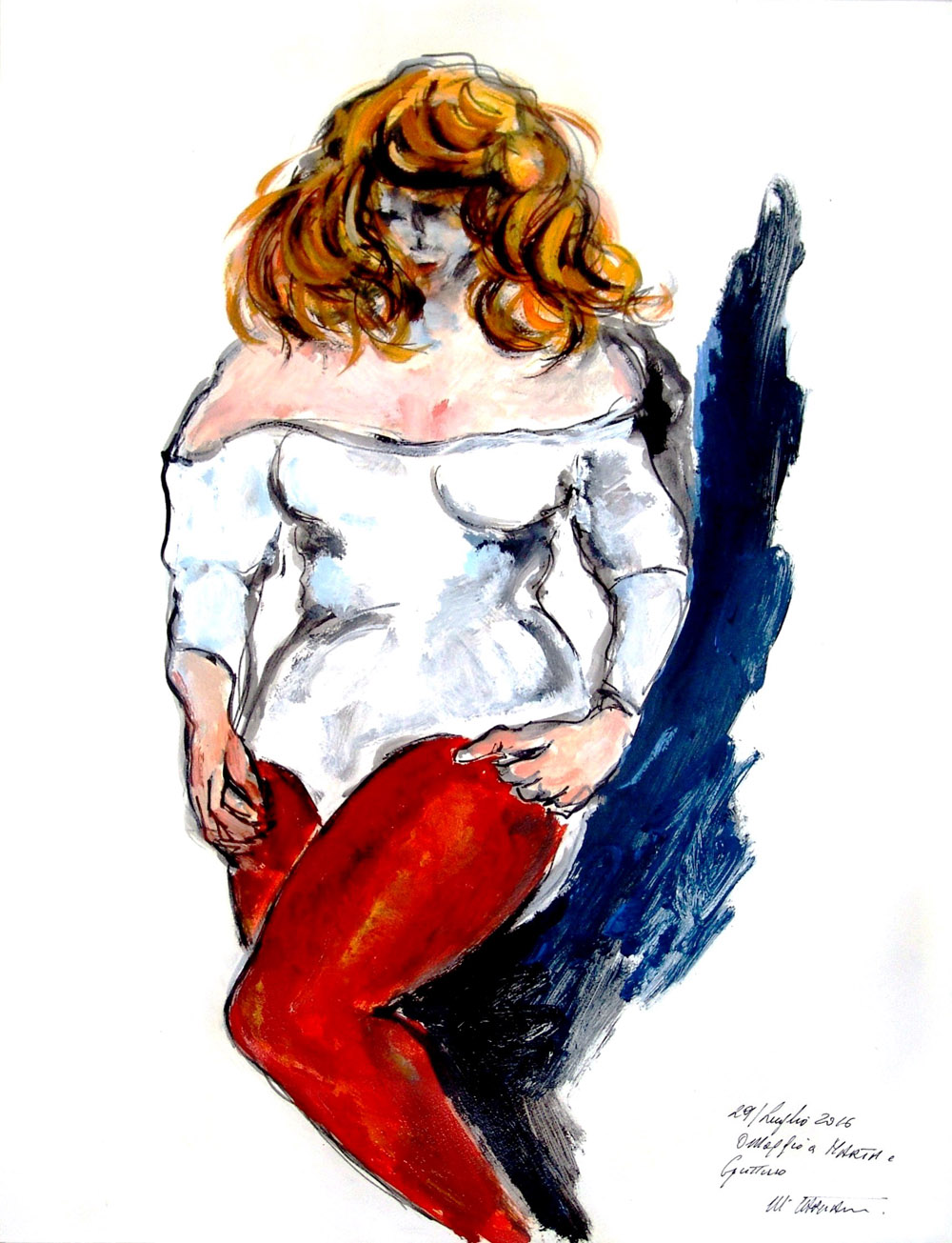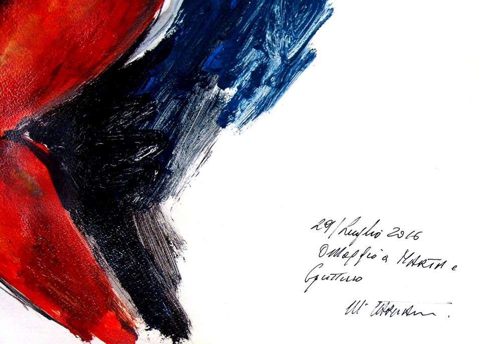 Mauro Capitani 1949, San Giovanni Valdarno (Ar) - [Italia] Omaggio a Marta e Guttuso olio su carta 78x58 cm 2016 firma dell’artista in basso a destra; opera con cornice certificato di autenticità dell'artista su fotografia