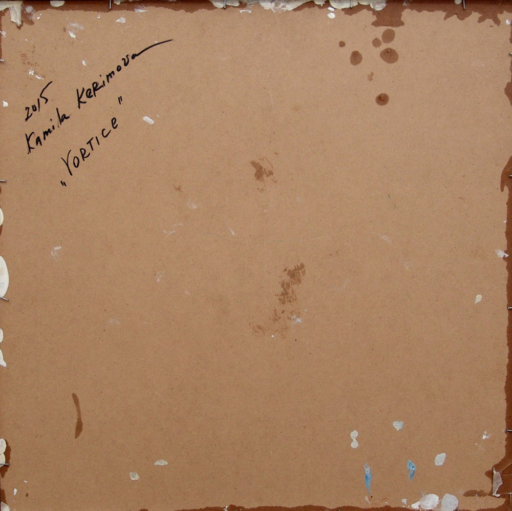Kamila Kerimova 1965, Tashkent - [Uzbekistan] Vortice tecnica mista su tavola 50x50 cm 2015 firma dell'artista in basso sul retro; opera con cornice certificato di autenticità Picenum