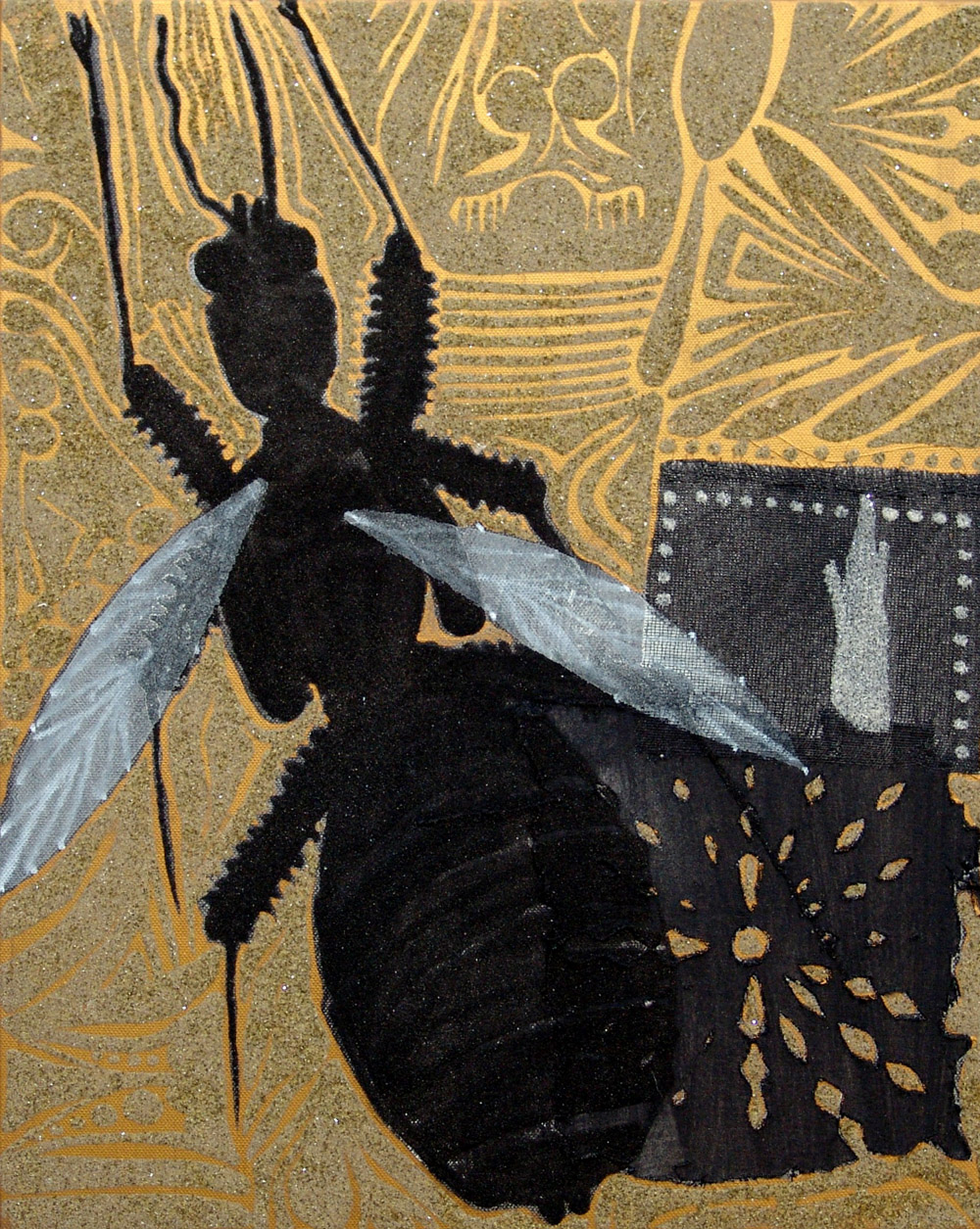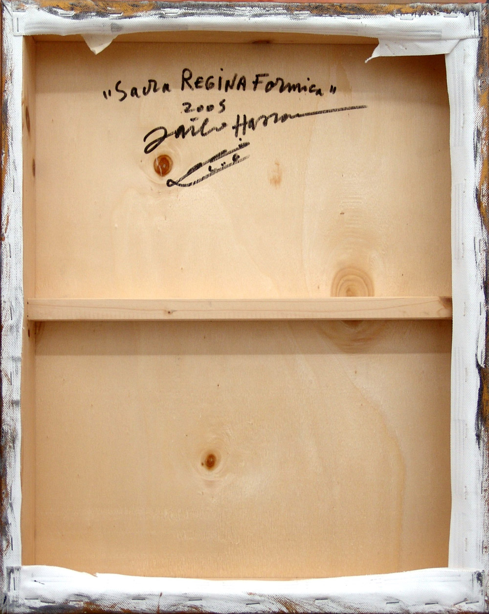 Fathi Hassan 1957, Il Cairo - [Egitto] Sacra Regina formica tecnica mista su tavola 50x40 cm 2005 firma dell'artista sul retro certificato di autenticità dell’artista su fotografia