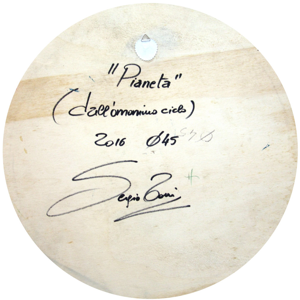Sergio Tassi 1953, Dicomano (Fi) - [Italia] Pianeta tecnica mista su faesite, circolare diametro 45 cm 2016 firma dell'artista sul retro certificato di autenticità Picenum