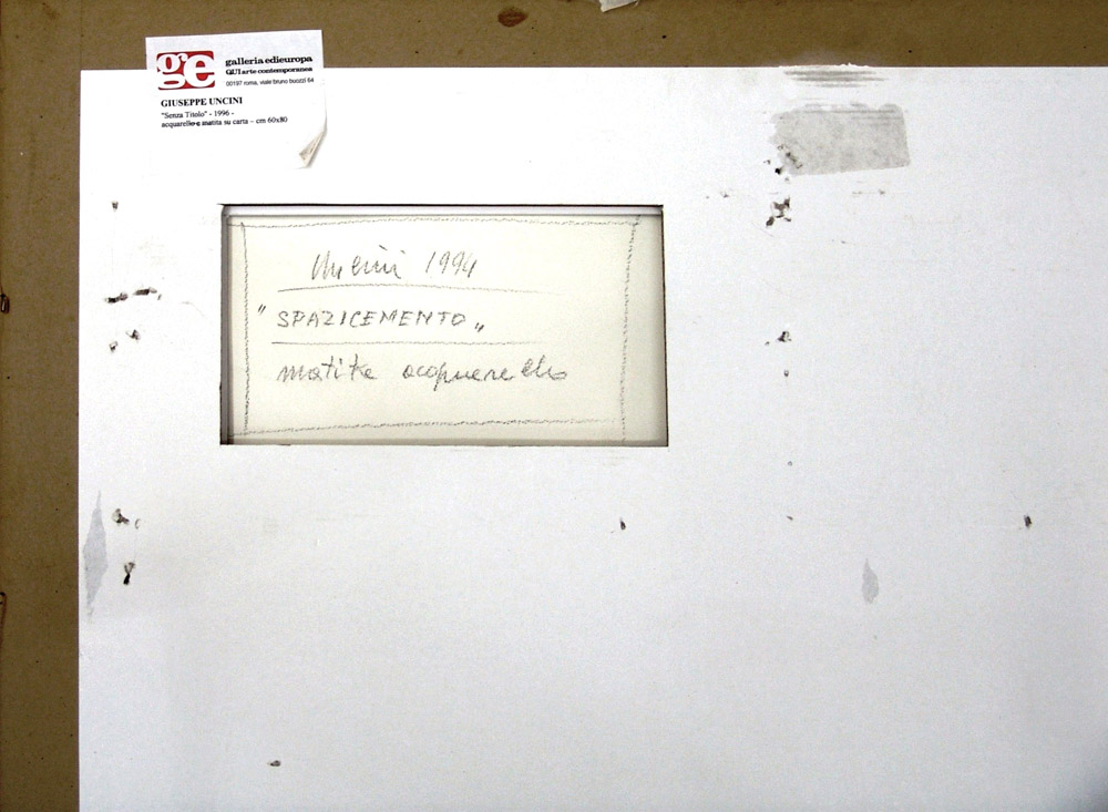 Giuseppe Uncini 1929, Fabriano (An) - 2008, Trevi (Pg) - [Italia] senza titolo matita e acquerello su carta 57x77 cm 1994 firma dell’artista in basso a destra e sul retro; opera con cornice certificato di autenticità Archivio Uncini