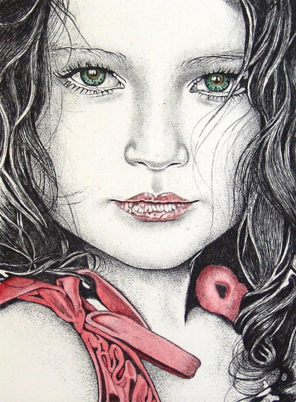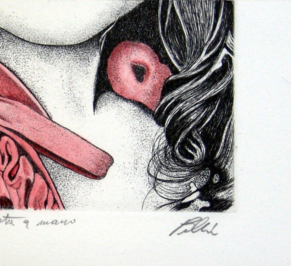 Cinzia Pellin 1973, Velletri (Rm) - [Italia] Fanciulla incisione acquerellata...