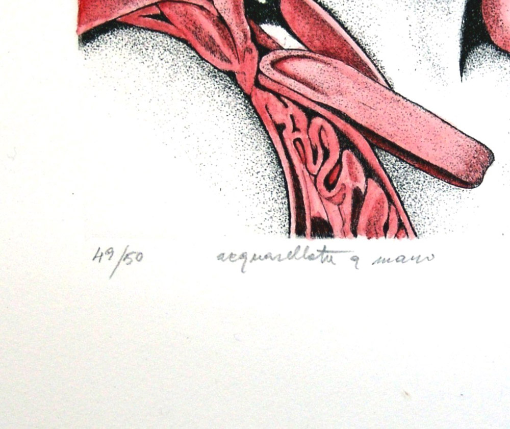 Cinzia Pellin 1973, Velletri (Rm) - [Italia] Fanciulla incisione acquerellata a mano 39,5x26,5 cm 2016 es. 49/50; firma dell'artista in basso a destra; opera con cornice certificato di autenticità Picenum