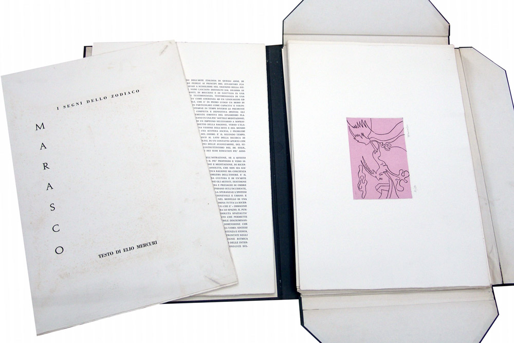 Antonio Marasco 1896, Nicastro (Cz) - 1975, Firenze (Fi) - [Italia] I segni dello Zodiaco acquaforte acquatinta 35x50 cm 1972 es. 10/50; collana di opere d’arte con testo di Elio Mercuri; firmate a mano dall’artista; n. 12 tavole; tipografia Rotatori Roma; cofanetto in tela formato 52x38 cm; cofanetto segnato dal tempo certificato di autenticità Picenum