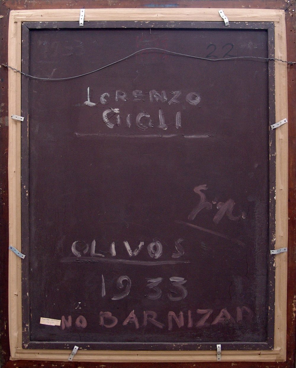 Lorenzo Gigli 1896, Recanati (Mc) - 1983, San Fernando (Argentina) - [Italia/Argentina] Olivos olio su tavola 125x100 cm 1933 firma dell'artista in basso a destra e sul retro; opera con cornice certificato di autenticità Picenum