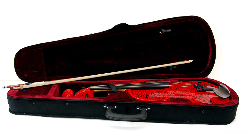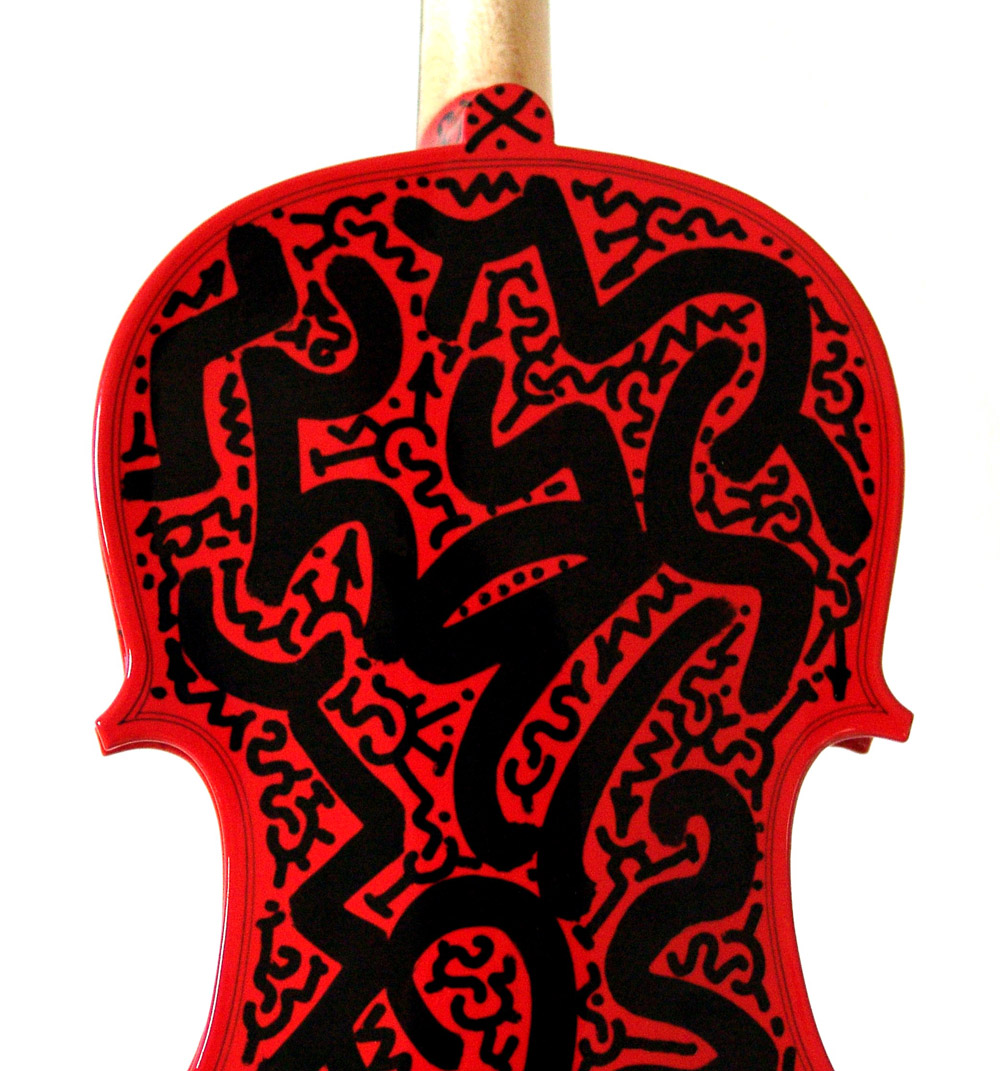 Angel Ortiz 1967, New York - [USA] Fiddle red violino dipinto recto e verso 60x20x10 cm 2008 opera contenuta in custodia certificato di autenticità della Follin Gallery di New York