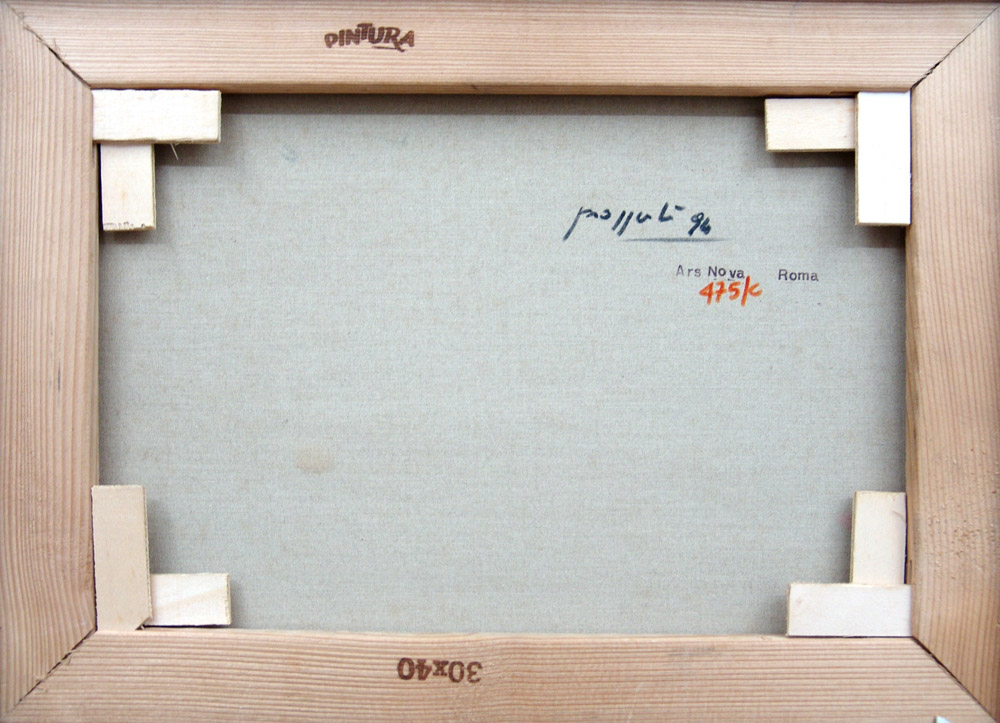 Concetto Pozzati 1935, Vo' (Pd) - [Italia] senza titolo tecnica mista su tela 30x40 cm 1994 firma dell’artista in basso a destra e sul retro certificato di autenticità Picenum