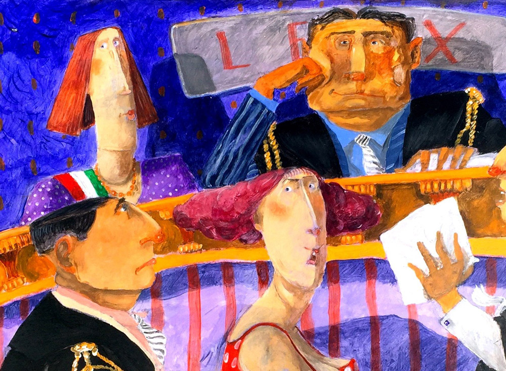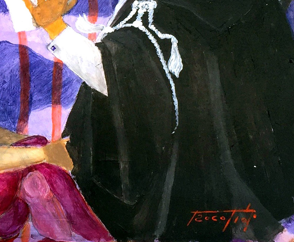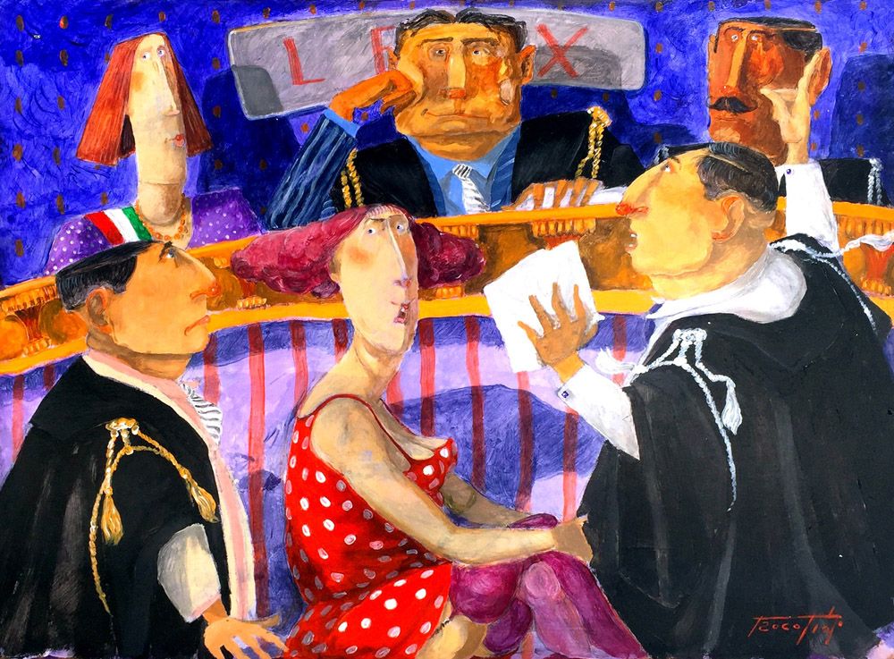Pino Procopio 1954, Guardavalle (Cz) - [Italia] Arringa finale acrilico su tavola 35x45 cm 2014 firma dell'artista in basso a destra e sul retro; opera con cornice certificato di autenticità dell’artista su fotografia