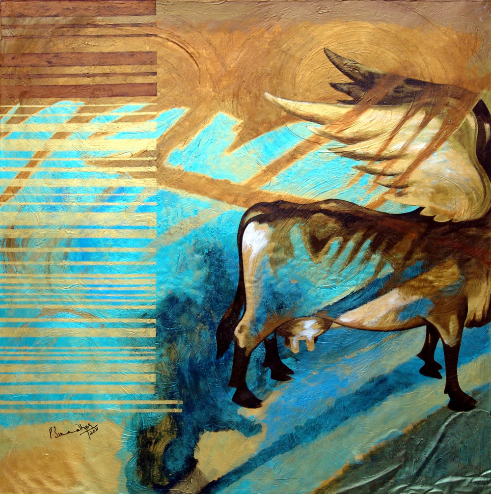 Poluru Sridhar 1968, Bhattiprolu - [India] Karma Bhoomi I acrilico su tela 121x121 cm 2011 firma dell’artista in basso a sinistra e sul retro certificato di autenticità Picenum