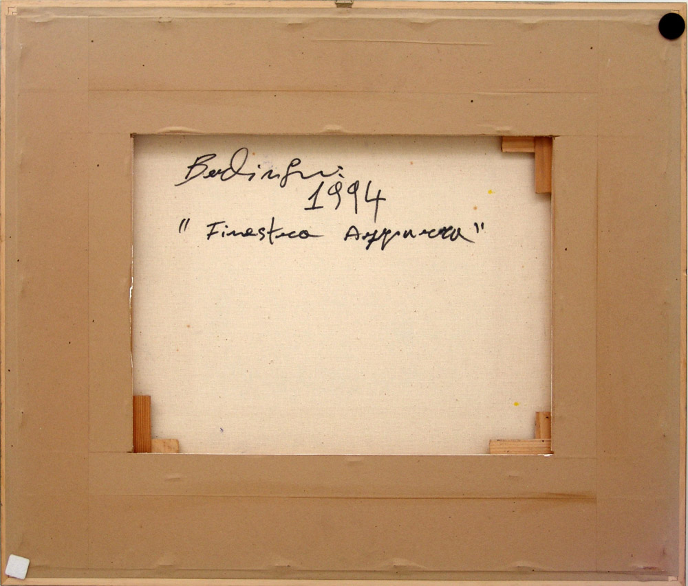 Cesare Berlingeri 1948, Cittanova (Rc) - [Italia] Finestra azzurra acrilico su tela 40x50 cm 1994 firma dell'artista sul retro; opera con cornice certificato di autenticità firmato dall'artista; opera pubblicata nel catalogo "ArteParma" del 2006