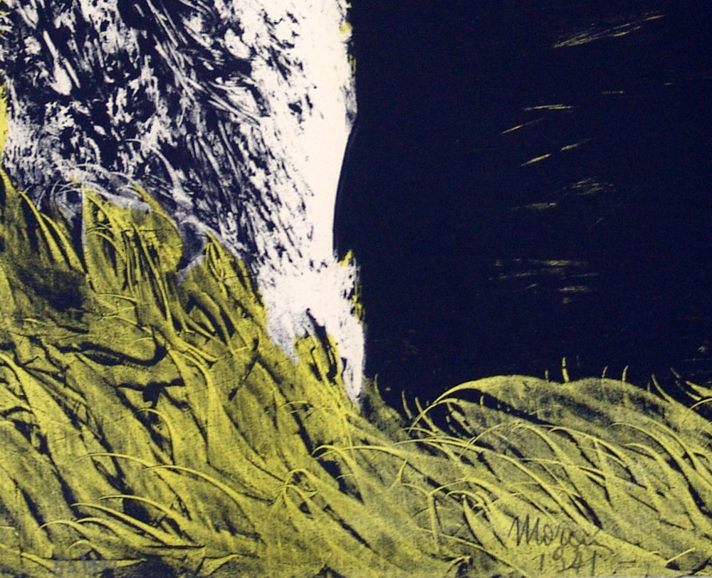 Mattia Moreni 1920, Pavia (Pv) - 1999, Brisighella (Ra) - [Italia] Un pezzo di sugar-baby su campo-pelliccia litografia a colori 51x71 cm 1971 firma dell’artista in basso al centro; opera con cornice certificato di autenticità Picenum; opera della collana "Sette litografie" Stamperia Il Bisonte Firenze