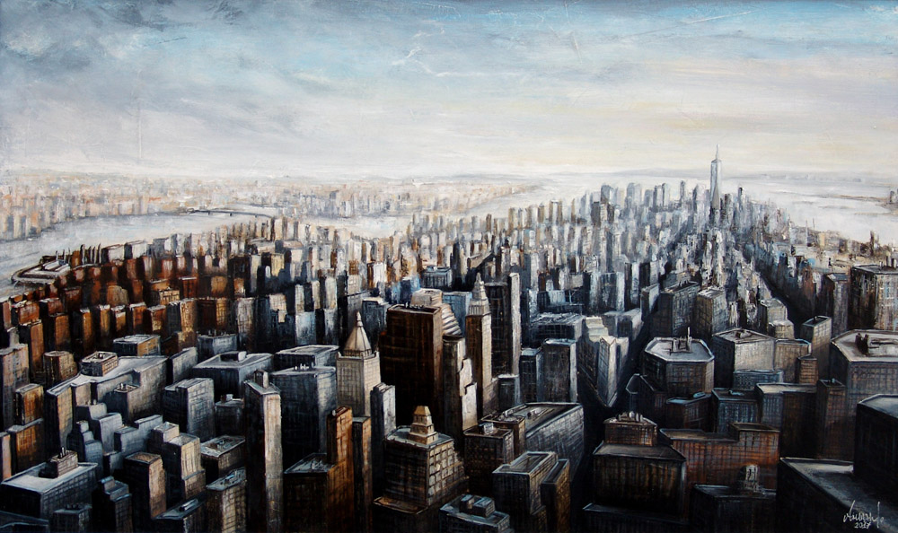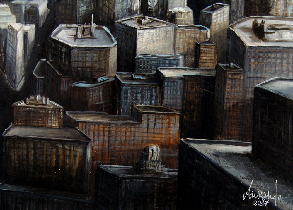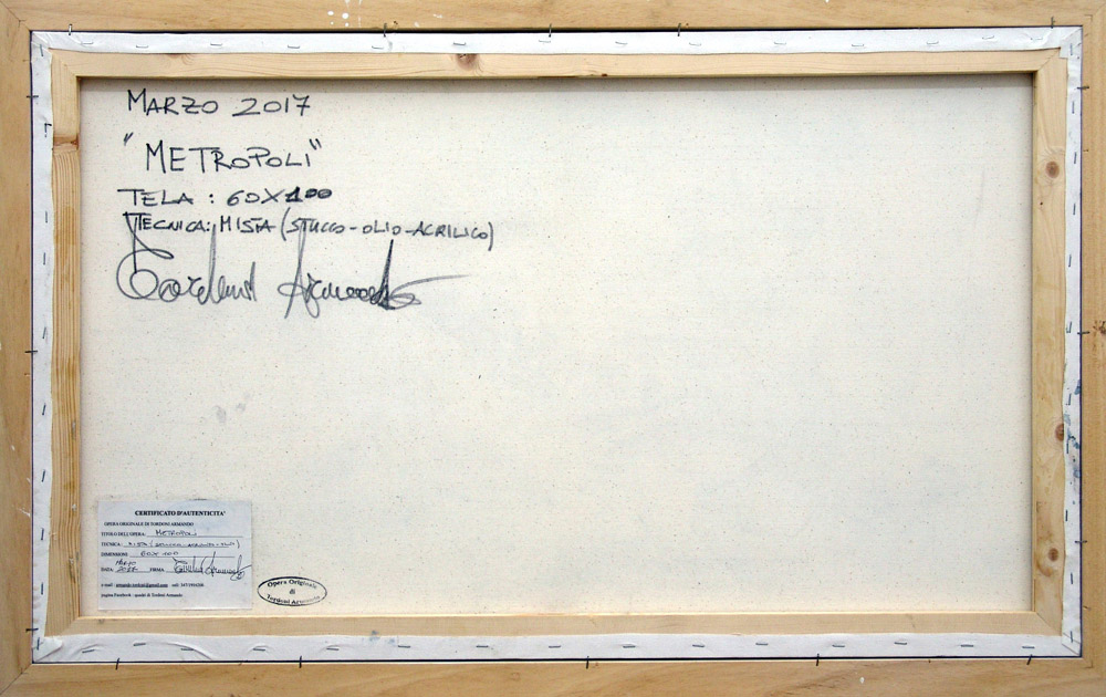 Armando Tordoni 1978, Foligno (Pg) - [Italia] Metropoli tecnica mista su tela 60x100 cm 2017 firma dell'artista in basso a destra e sul retro; opera con cornice certificato di autenticità firmato dall'artista