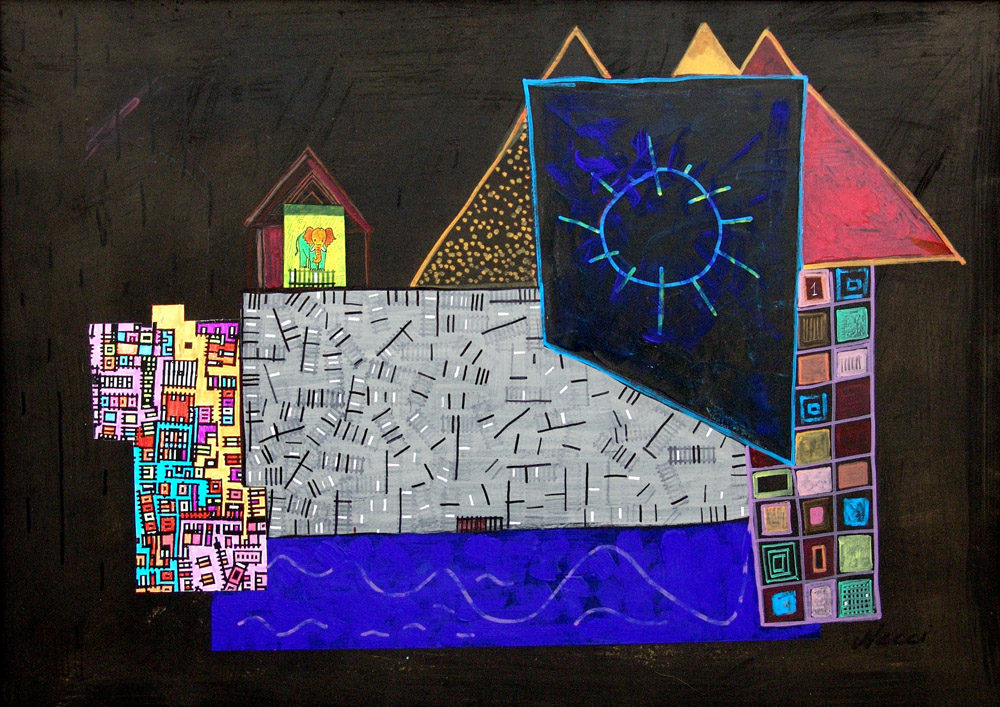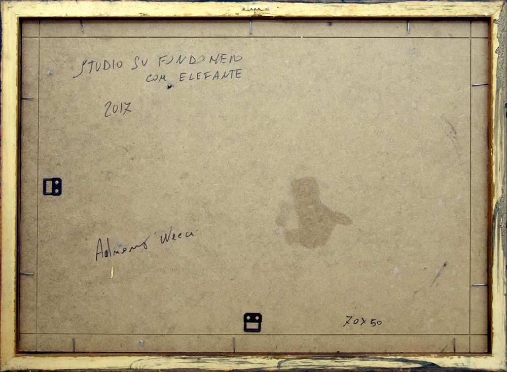 Adriano Necci 1958, Roma (Rm) - [Italia] Studio su fondo nero con elefante acrilico su tavola 50x70 cm 2017 firma dell'artista in basso a destra e sul retro; opera con cornice certificato di autenticità Picenum