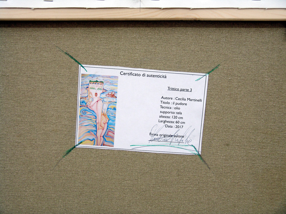 Cecilia Martinelli 1966, Pisa (Pi) - [Italia] Il pudore olio su tela 120x60 cm 2017 firma dell’artista in basso a destra certificato di autenticità firmato dall’artista