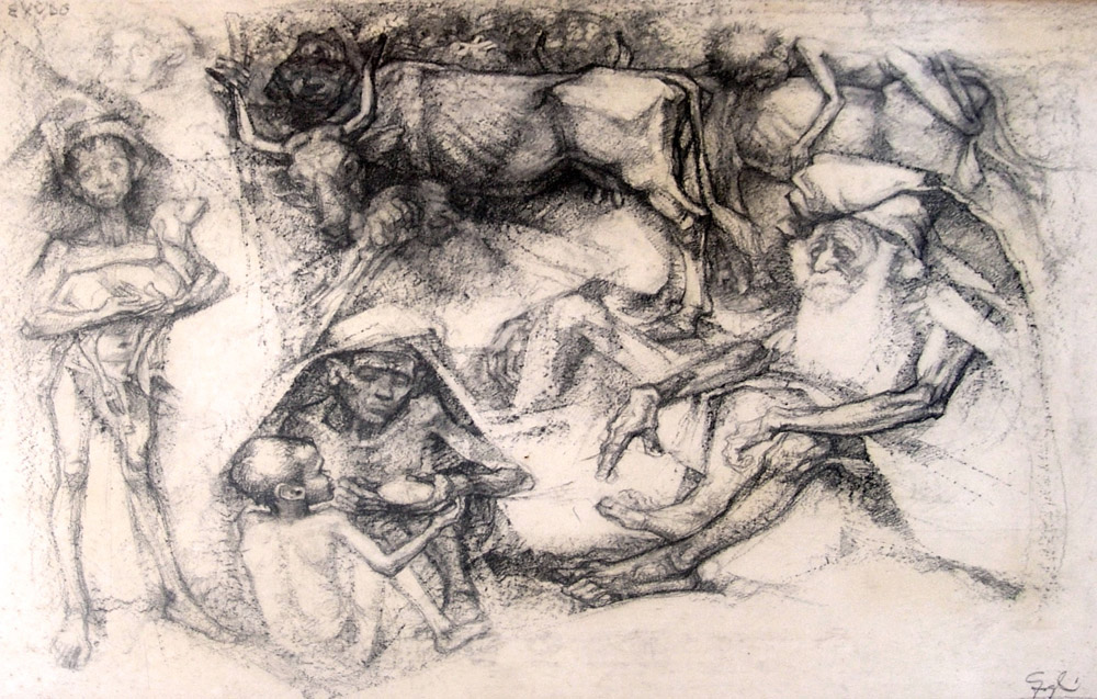 Lorenzo Gigli 1896, Recanati (Mc) - 1983, San Fernando (Argentina) - [Italia/Argentina] Esodo matita su carta 85x111 cm c. 1935 firma dell'artista in basso a destra; opera con cornice certificato di autenticità Picenum