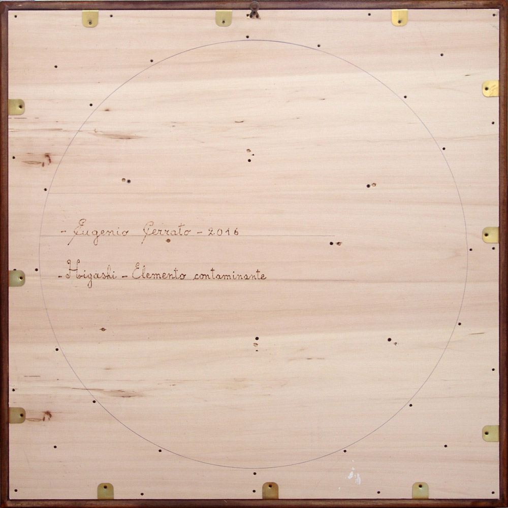 Eugenio Cerrato 1947, Gravellona Toce (Vb) - [Italia] Higashi - elemento contaminante acrilico su legno, tappo di coca-cola 80x80 cm 2016 firma dell’artista sul retro; opera con cornice certificato di autenticità Picenum