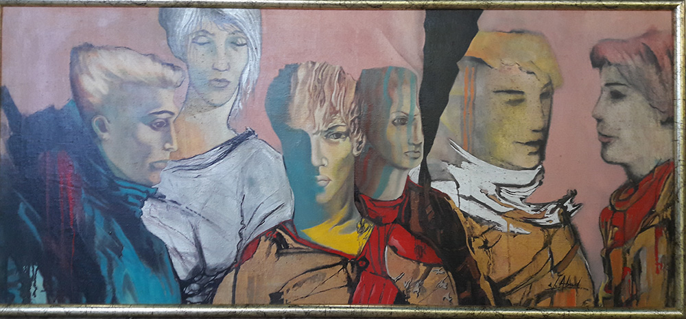 Victor Abad "Folla di giovani" - Olio su tela - cm 60x135 - Firma dell'artista in basso a dx