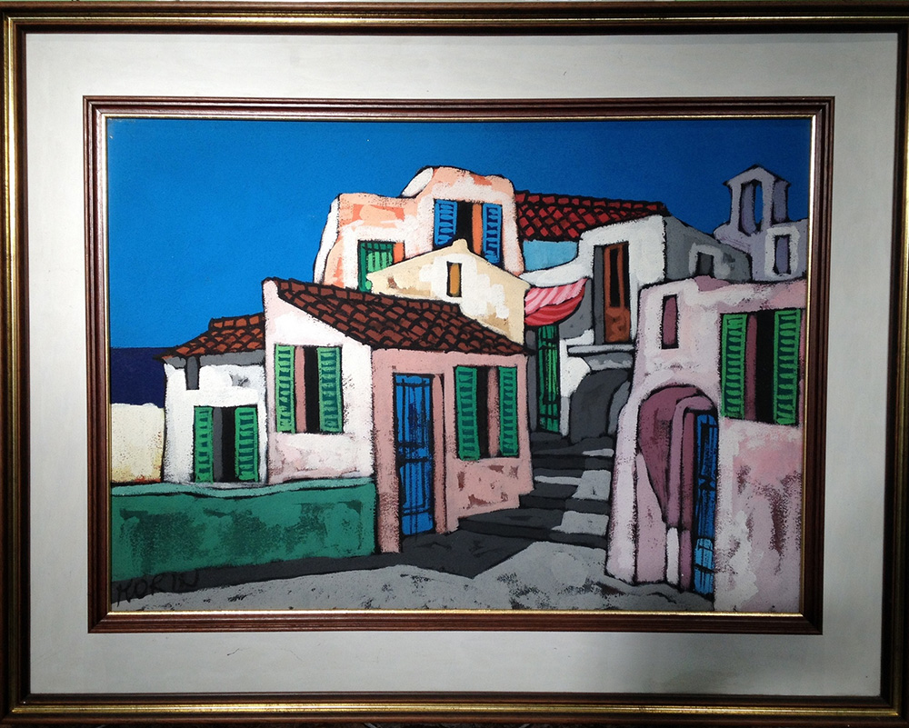 Morin "Villaggio" - Tecnica mista su tela - cm 53x73 - Firma in basso a sx
