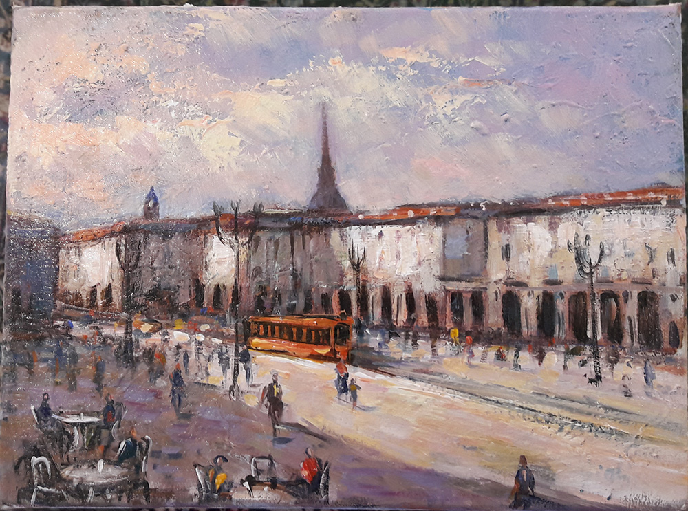 Lot 52 | Gigli "Piazza Vittorio" - Tecnica mista su tela - cm 30x40