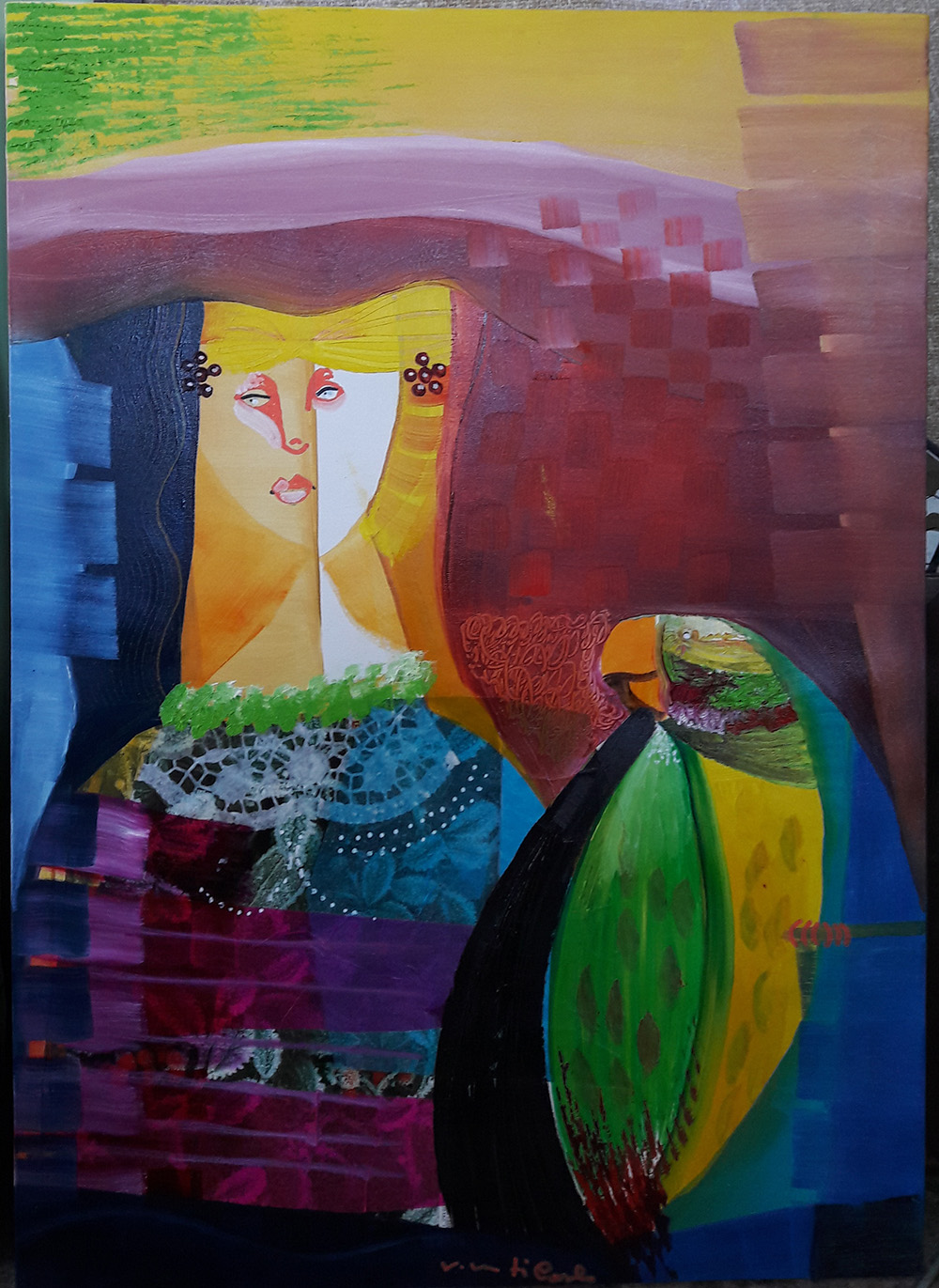 Vittorio Maria Di Carlo "Donna con pappagallo" - Olio su tela - cm 70x50 - Firma dell'artista in basso al centro - Autentica e archivio dell'artista su foto