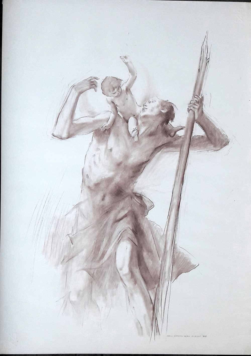 Mario Caffaro Rore "Personaggio biblico" - Tecnica mista su carta - cm 70x50 - Firma dell'artista in basso a dx