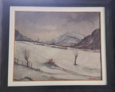 Lot 73 | Biagio Blasi (Blasius) "Paesaggio innevato" - Olio su cartone rigido - cm...