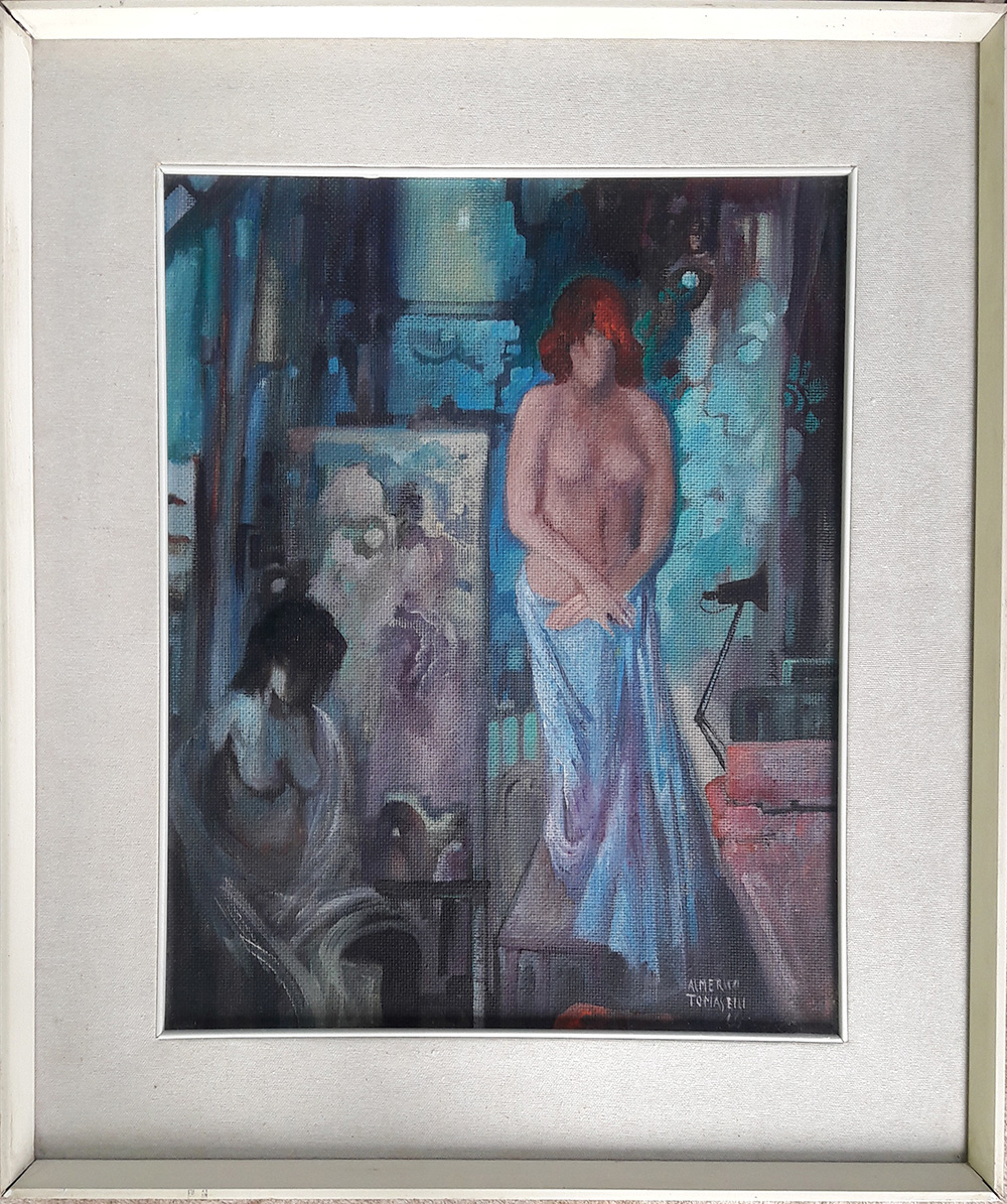 Almerico Tomaselli "Nello studio dell'artista" - 1965 - Olio su masonite - cm...