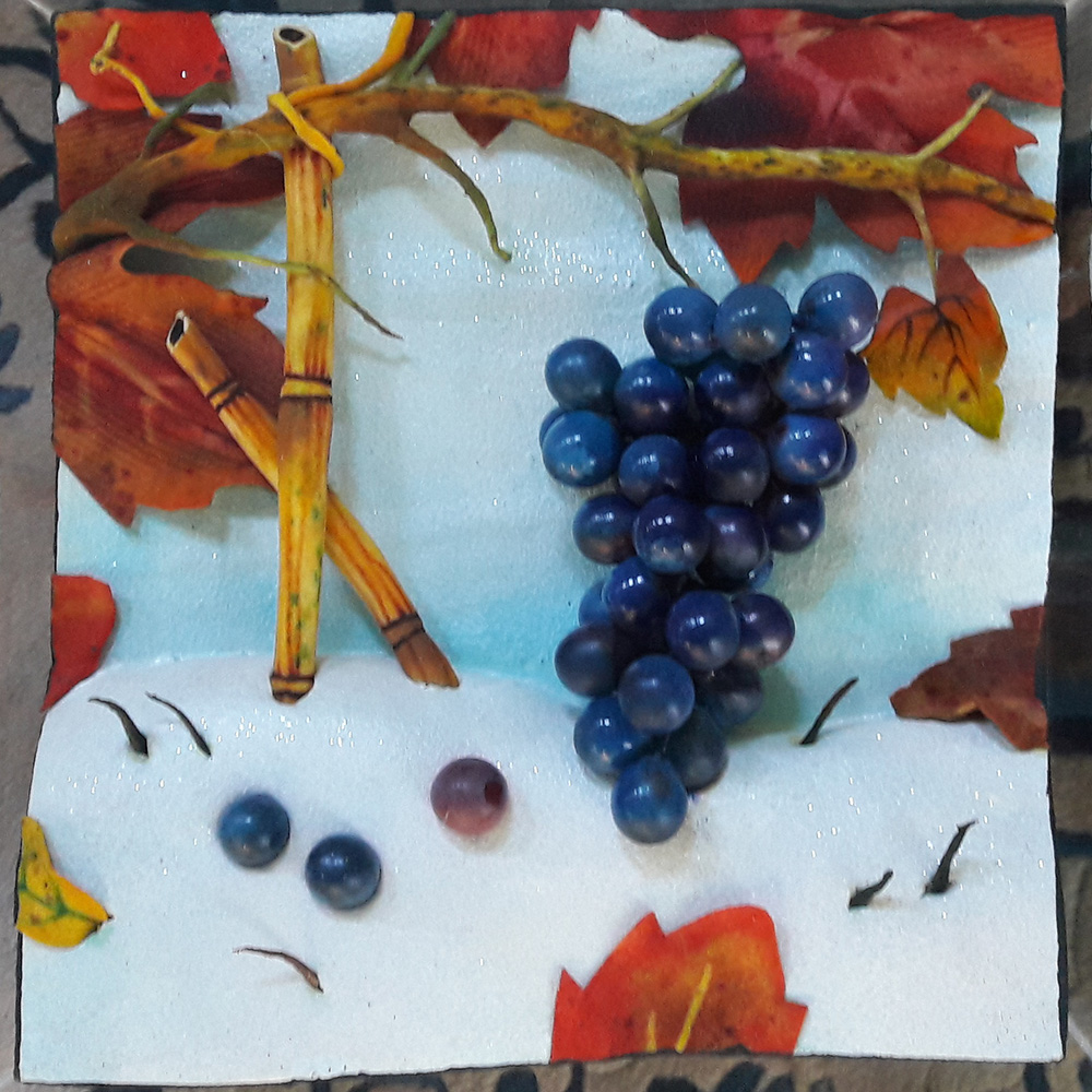 Piero Gilardi "Prima neve nella vigna" - Poliuretano espanso dipinto in teca...