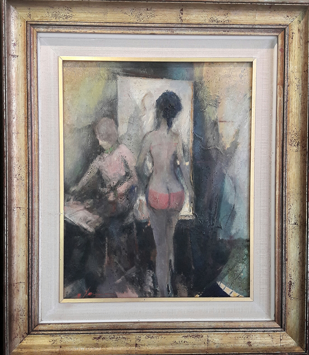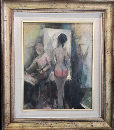 Armando Farina "Nello studio del pittore" - Olio su cartoncino telato - cm 50x40 - Firma in basso a sx