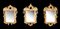 Lotto di tre piccole specchiere in legno intagliato e dorato in policromia a...