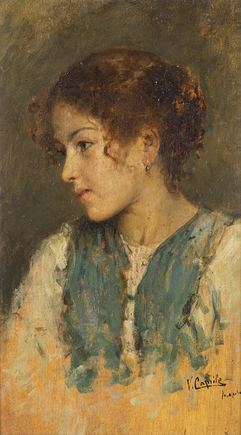 Vincenzo Caprile (Napoli 1856 - 1936) "Fanciulla" olio su tavola (cm 28x18)...