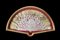 Ventaglio con stecche in madreperla incise e traforate a fiori e scena...