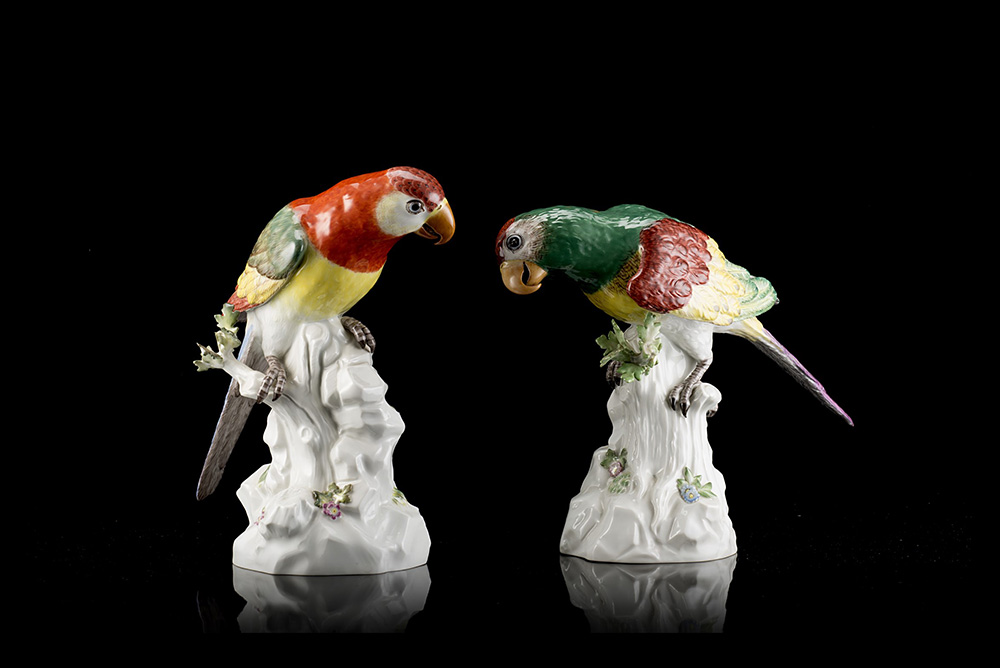 Manifattura di Meissen "Pappagalli" coppia di statuette in porcellana...