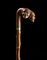 Bastone con canna in legno e presa in corno a tabacchiera scolpita a testa di...
