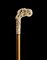 Bastone con canna in legno e presa in avorio sagomato e scolpito a scimmie su...