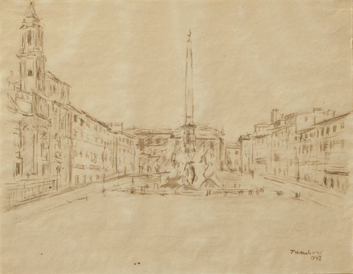 TAMBURI ORFEO Jesi (AN) 1910 - 1994 "Piazza Navona" 1942 22x28 china su carta...