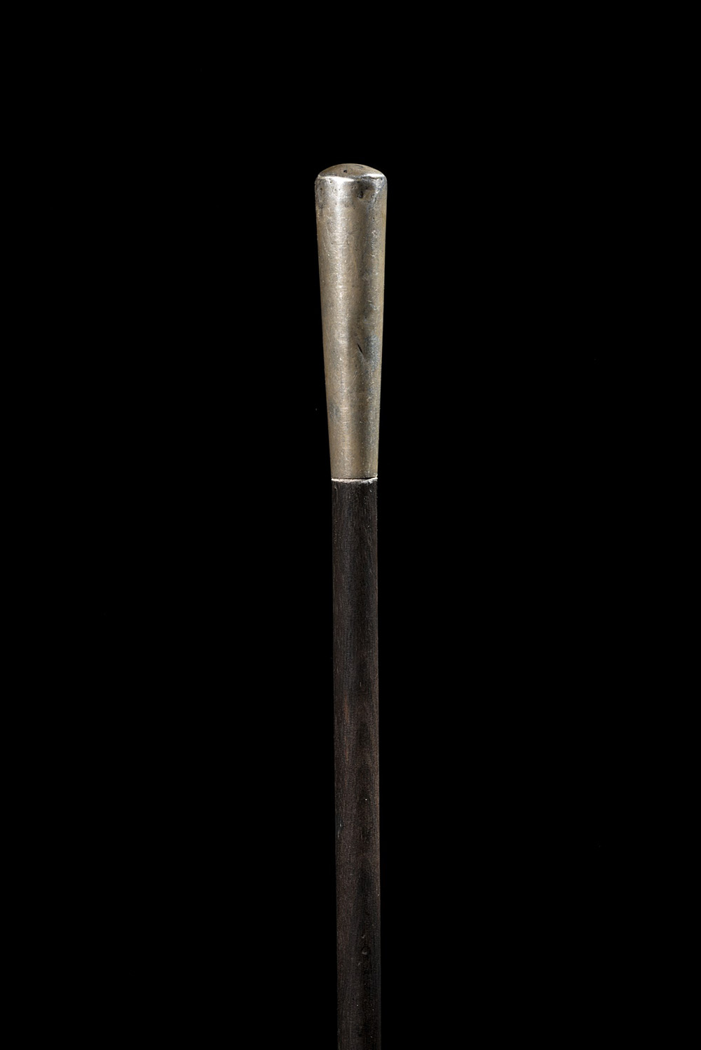 Bastone con canna in palissandro con presa in argento a corpo liscio (difetti) A rosewood walking stick with silver handle (defects)