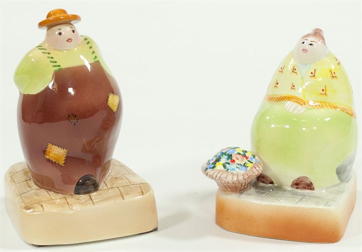 RONZAN ANTONIO "Contadino" "Fioraia" H cm 18 e 16 ceramiche policrome Opere...