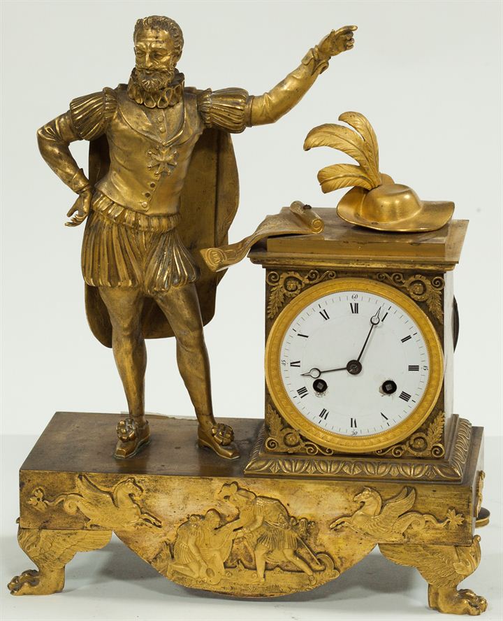 PENDOLA DA TAVOLO Pendola da tavolo in bronzo cesellato e dorato, Francia...