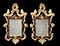 Coppia di piccole specchiere in legno intagliato, laccato e dorato a fiori e...