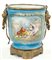 Vaso in porcellana di Sevres, seconda metà XIX secolo, a fondo azzurro con dipinta da un lato una scena galante e al retro dei fiori