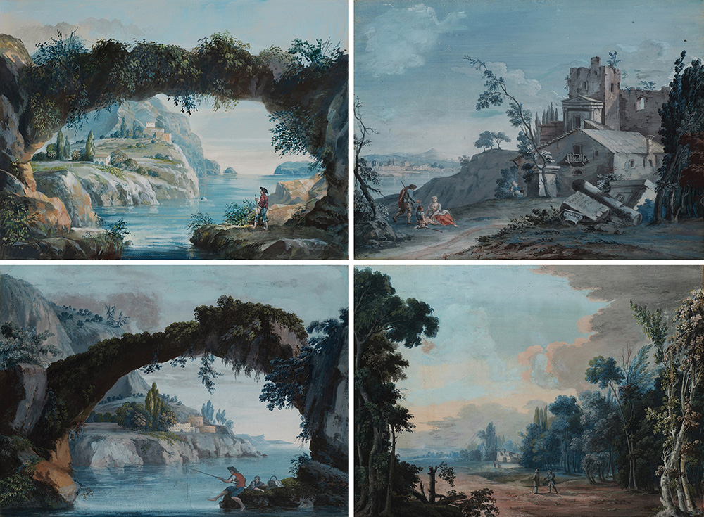 Lot 1802 | Scuola del Centro Italia, sec. XVIII "Paesaggi con figure e architetture"...