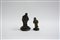 Due piccoli bronzi raffiguranti Daruma e un monaco tibetano con basi in legno Sec. XX (h. max. 16,5 cm.)