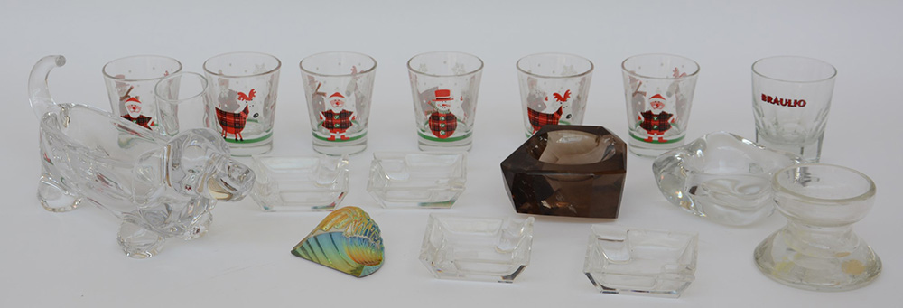 Scatola contenente alcuni oggetti in vetro di manifatture diverse (lievi difetti e mancanze)