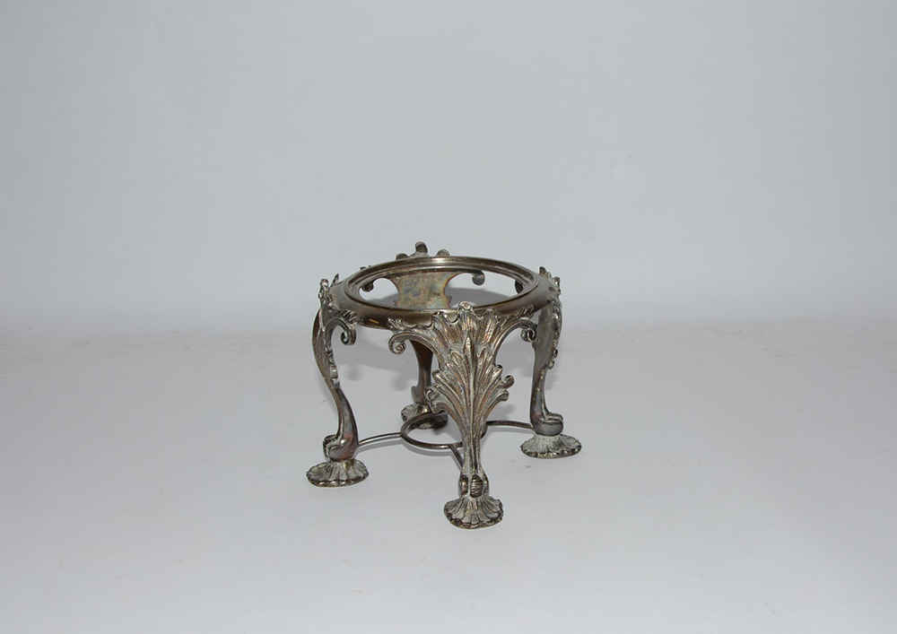 Alzatina in metallo traforato decorata a foglie. Fine sec. XIX