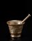 Mortaio in bronzo con pestello, fascia decorata a tralci di vite e uva (h. cm 12) Sec. XVI