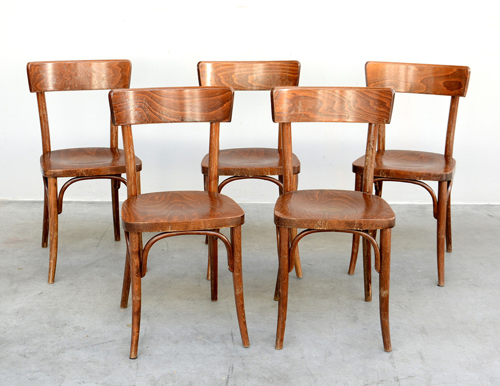 Lotto composto da cinque sedie Thonet in legno con schienale avvolgente. Sec XX (cm 42x80x39) (difetti e mancanze)