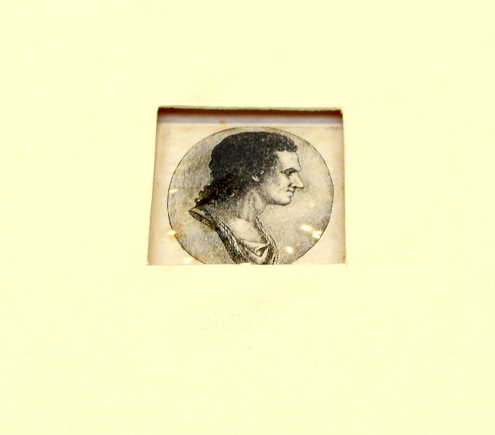 Stampa di David Deuchar (1743-1808) raffigurante profilo virile (cm 5x4,5...