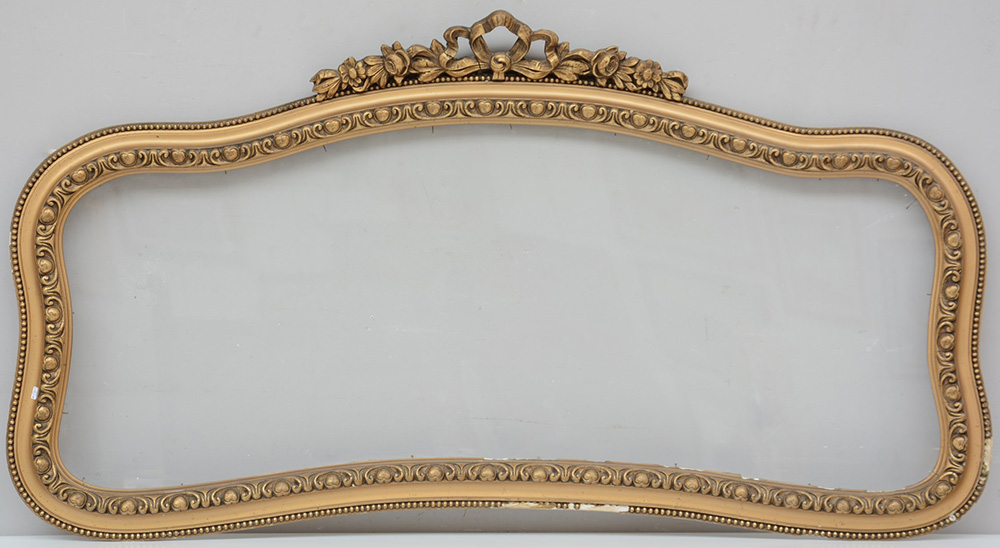 Cornice di forma sagomata in legno e pastiglia dorata (cm 48x120) (difetti e mancanze)