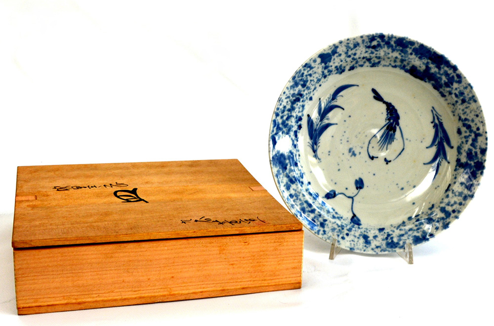 Lot 111 | Manifattura giapponese. Piatto in porcellana bianca e blu commemorativo, in...